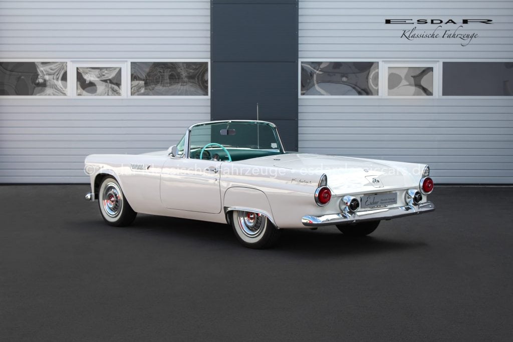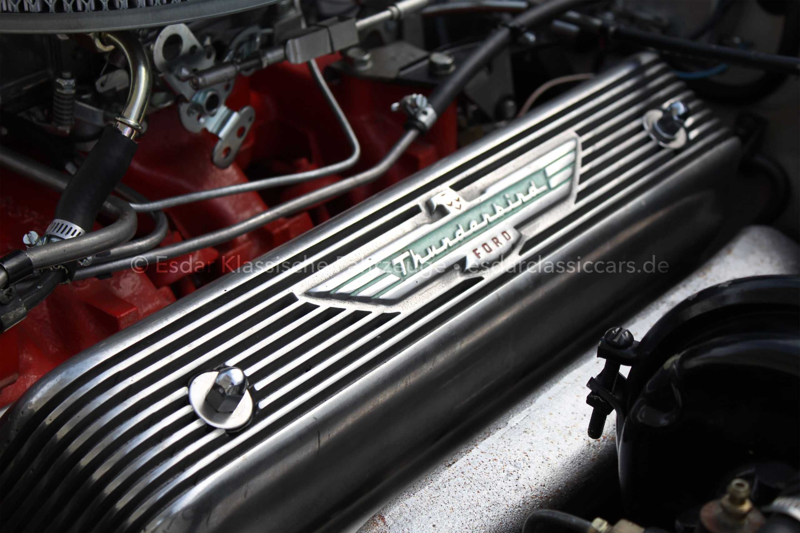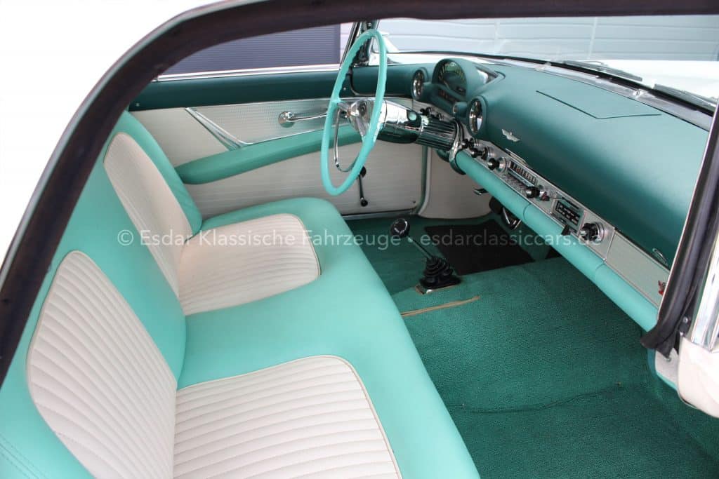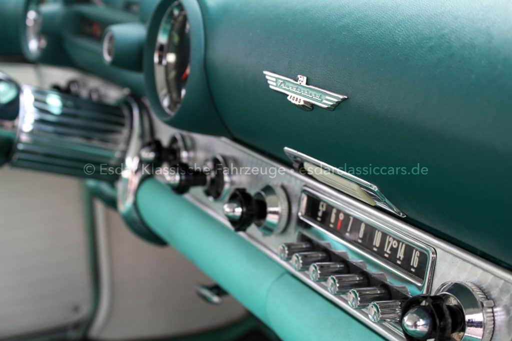Dieser Thunderbird überzeugt nicht nur optisch, sondern auch technisch. Er verfügt über einen Vierfachvergaser Holley für mehr Leistung, ein original Ford-Radio für authentisches 50er-Jahre-Flair und einer edlen Innenausstattung mit viel Liebe zum Detail.