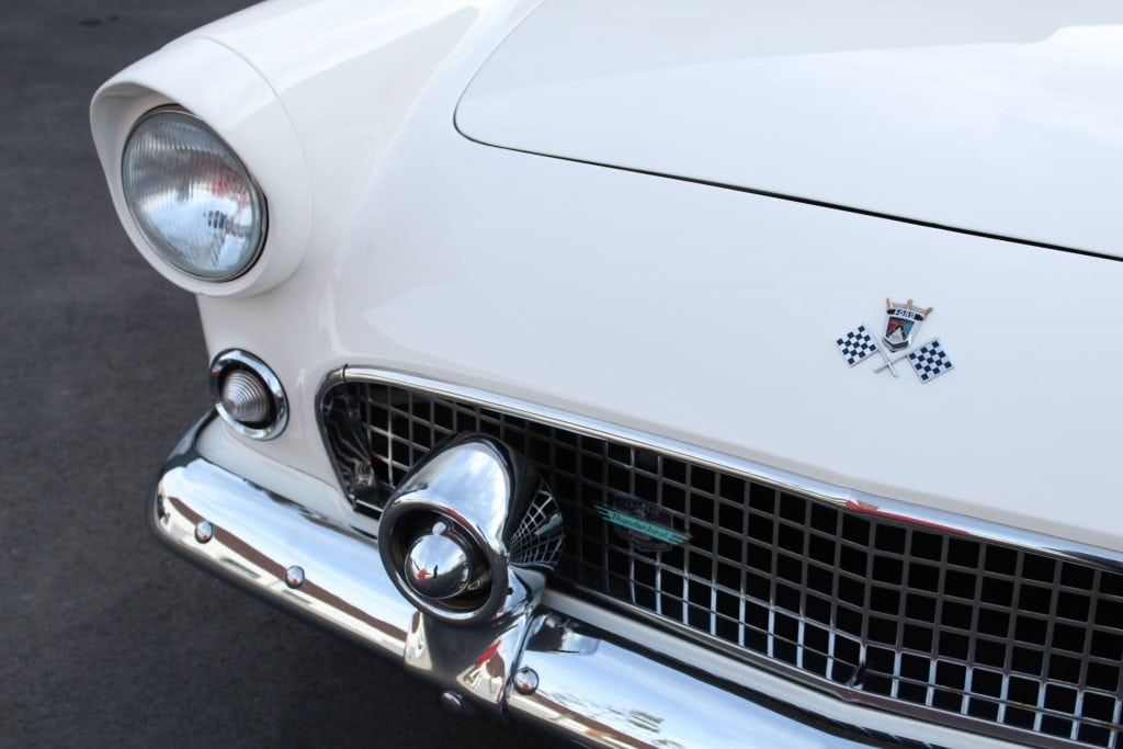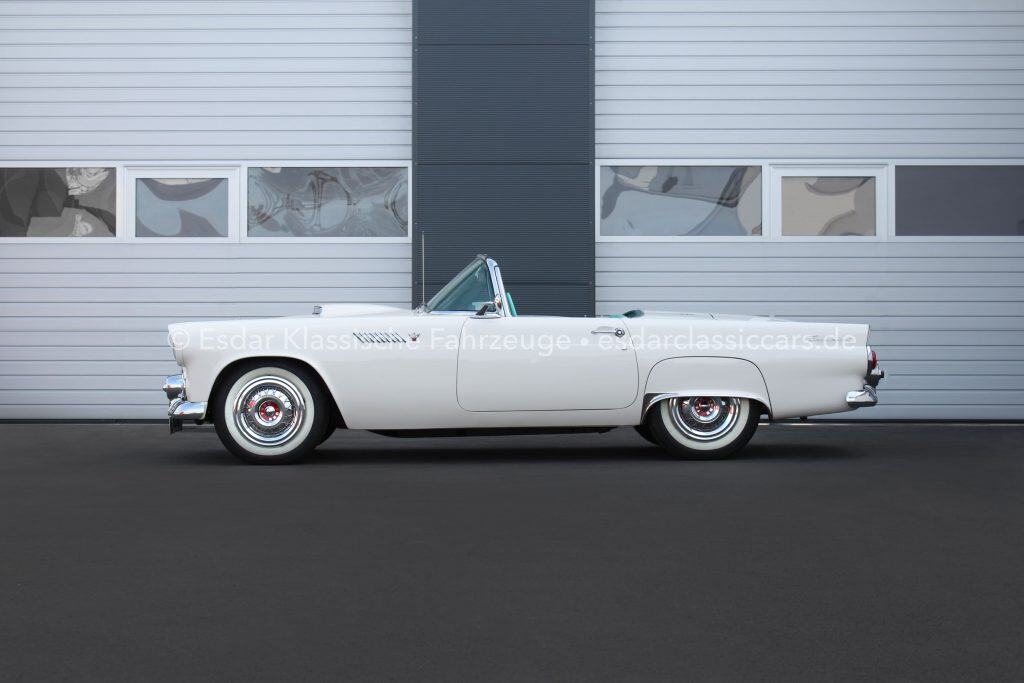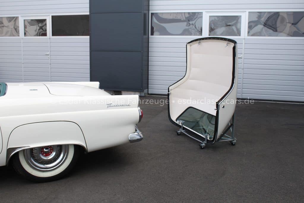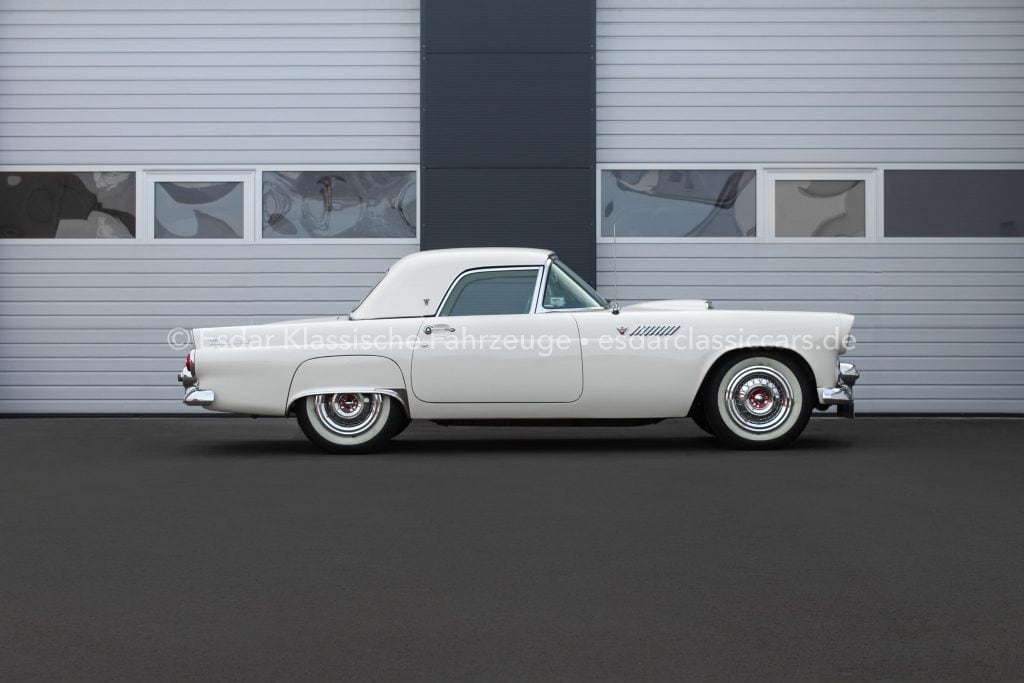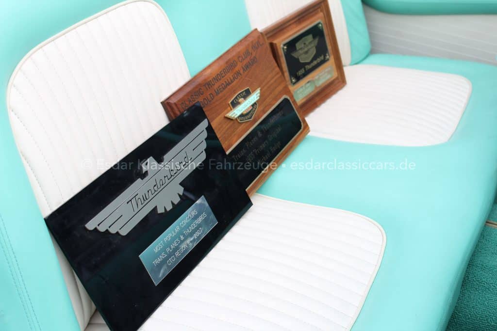 Dieser Thunderbird überzeugt nicht nur optisch, sondern auch technisch. Er verfügt über einen Vierfachvergaser Holley für mehr Leistung, ein original Ford-Radio für authentisches 50er-Jahre-Flair und einer edlen Innenausstattung mit viel Liebe zum Detail.