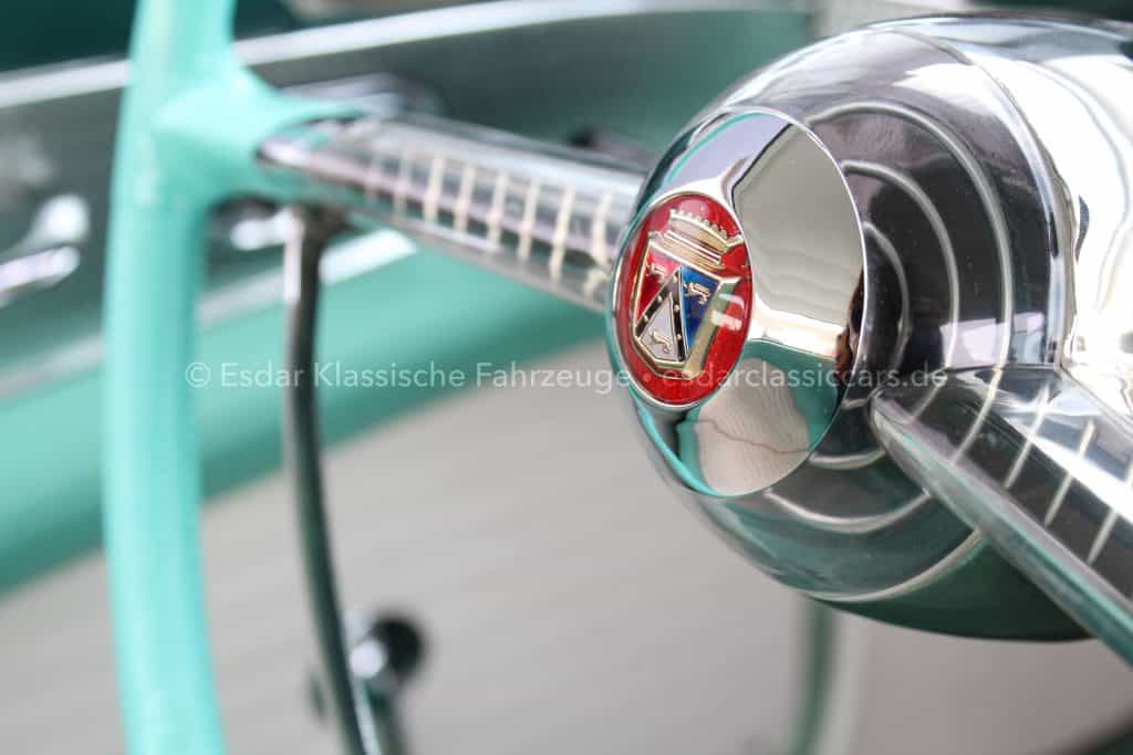 Die Farbkombination im Art-Déco-Stil spiegelt die Atmosphäre der 50er- und 60er-Jahre in Miami perfekt wider. Der kräftige V8-Motor in Kombination mit dem Vierfachvergaser sorgt für souveräne Leistung und dem unverwechselbarem amerikanischen Sound. Gemeinsam mit der markanten Linienführung und den klassischen Chromdetails entsteht ein Auftritt, der Eleganz und Extravaganz verbindet.