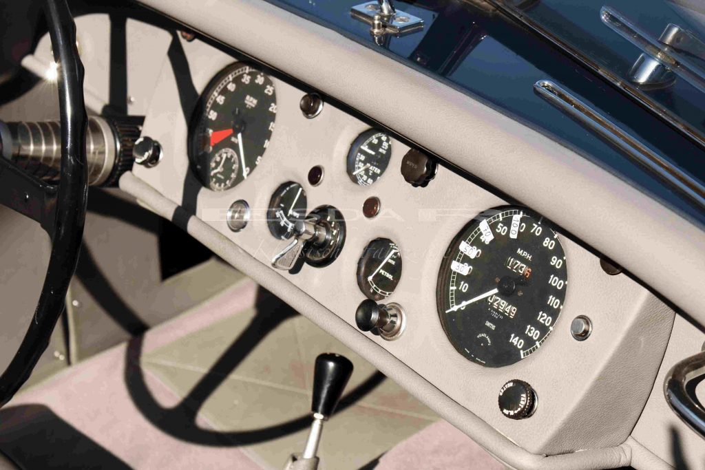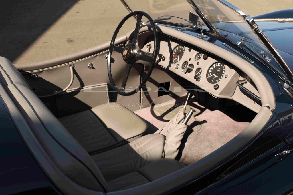 Der Jaguar XK 140 SE OTS vereint klassischen Charme mit sportlicher Eleganz und gehört zu den gefragtesten Sammlerstücken der Jaguar XK-Reihe. Das Modell verfügt über Matching Numbers und eine umfangreiche Restaurierung, die mit einer vollständigen Dokumentation belegt ist. Zusätzlich unterstreichen die originalen Chromspeichenfelgen den sportlich-eleganten Look des Fahrzeugs. Weltweit wurden nur 3.350 Exemplare dieses Modells produziert, was seine Seltenheit unterstreicht.