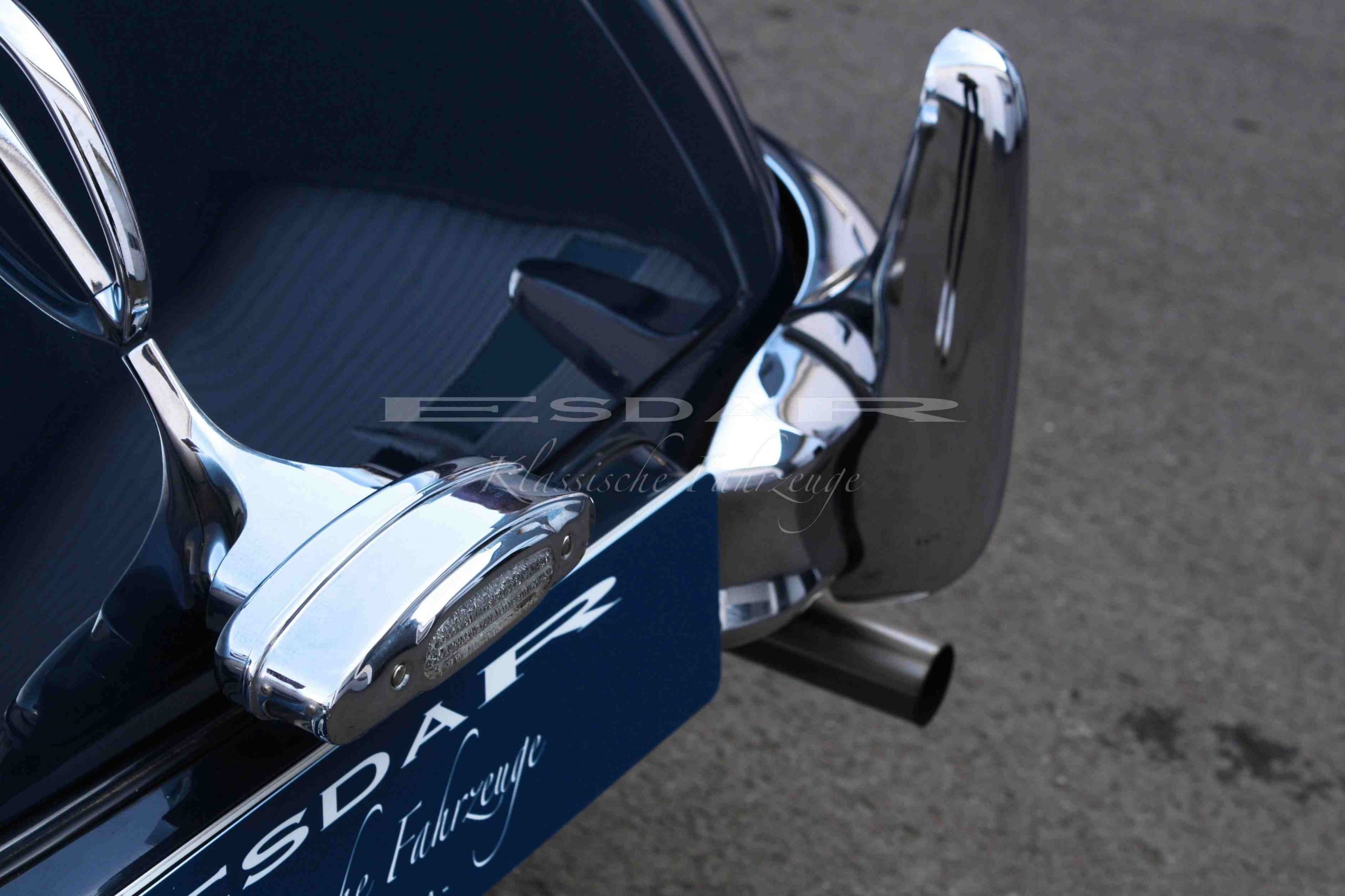 Der Jaguar XK 140 SE OTS wurde 1957 erstmals in New York ausgeliefert und besticht durch seine authentische Historie. Ursprünglich präsentierte sich das Fahrzeug in der Farbkombination Schwarz/Rot. Nach umfangreicher Restaurierung zeigt sich der Wagen heute in der eleganten Kombination Blau/Hellgrau. Nach der Erstauslieferung in die USA gelangte der Wagen später in die Niederlande und schließlich nach Deutschland. Im Jahr 2011 wurde er vollständig restauriert – die Arbeiten wurden professionell durchgeführt und umfassen eine umfangreiche Dokumentation. Ein offizielles Jaguar-Zertifikat bestätigt die Originalität und Historie des Fahrzeugs.