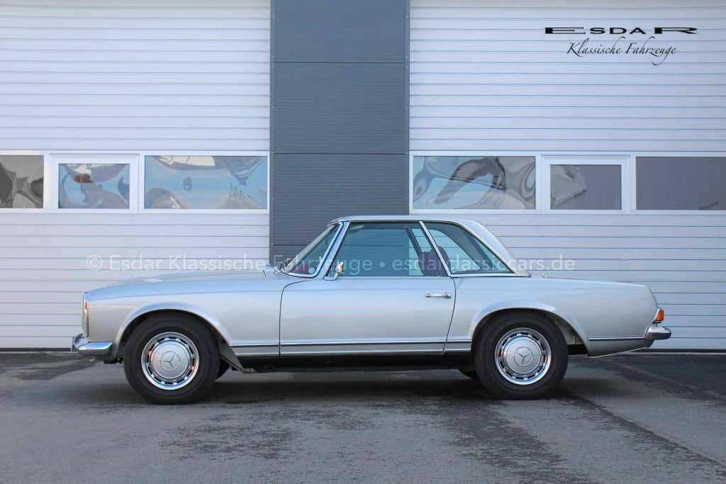 Ein besonderes Highlight: 2016 wurde die Pagode vollständig restauriert. Eine umfangreiche Fotodokumentation belegt den unfall- und rostfreien Zustand der Karosserie. Seitdem präsentiert sich der Wagen in herausragender optischer wie technischer Verfassung. Alles in allem bietet die Pagode sowohl Fahrfreude als auch Wertstabilität.