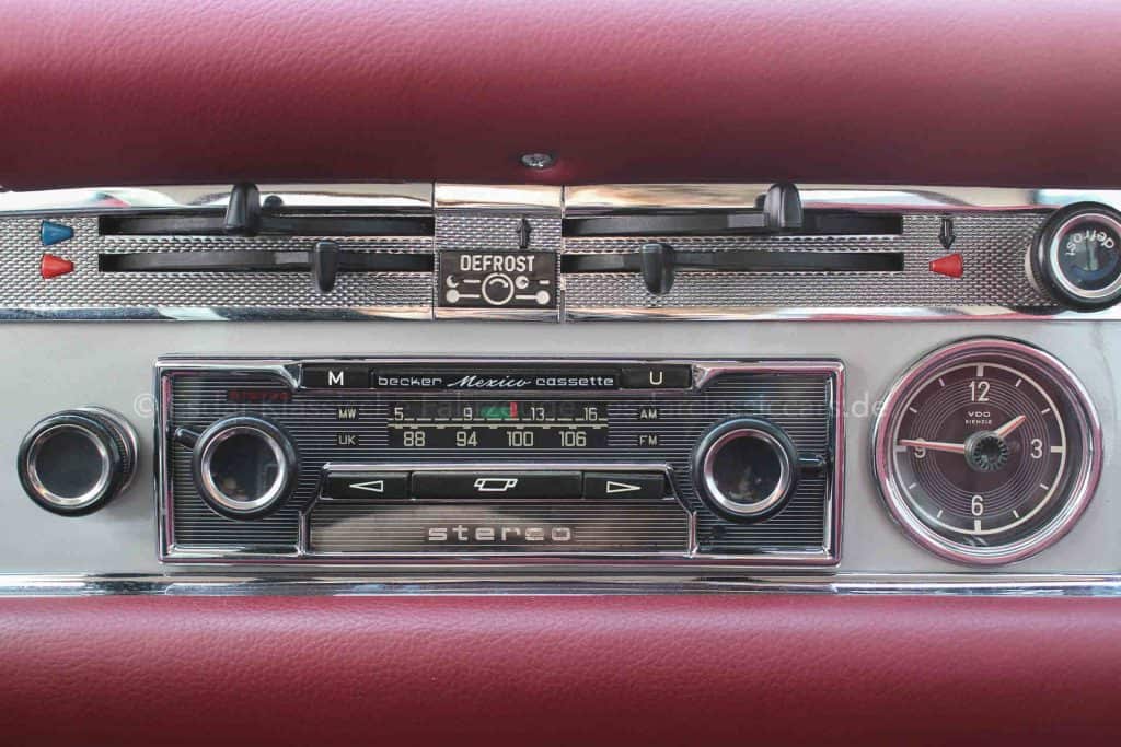 Die Historie des Fahrzeugs ist detailliert nachvollziehbar: Mit 113.726ml erfolgte am 10.09.1990 der erste Besitzerwechsel nach Escondido (USA), bevor die Pagode am 20.10.1993 nach Deutschland verschifft wurde. Am 13.05.1994 wurde sie in Steinfurt mit einem Tachostand von 114.928ml erneut zugelassen. Im Jahr 2000 wurde das Fahrzeug auf den deutschen Auslieferungsstand umgebaut (Scheinwerfer, Stoßstangen & Radio). Am 18.07.2003 wurde der Meilen Tacho ausgebaut und gegen einen Km-Tacho getauscht. Stand 00003km bei TÜV-Abnahme. 2016 wurde das Fahrzeug in den Kreis Lippe verkauft. Seit 2021 ist die Pagode im Besitz des heutigen Eigentümers. Die Fahrzeughistorie ist durchgehend dokumentiert und zeigt den gepflegten Umgang mit diesem Klassiker.